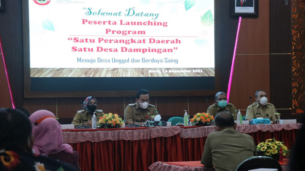 “Bismillah. Hari ini kita launching program "Satu Perangkat Daerah, Satu Desa Dampingan, Menuju Desa Unggul dan Berdaya Saing". Yakni setiap perangkat daerah atau dinas kita minta melakukan pendampingan desa untuk perbaikan DTKS, penanggulangan kemiskinan, dan pemberdayaan masyarakat sesuai potensi masing-masing wilayahnya,” ucap Bupati.