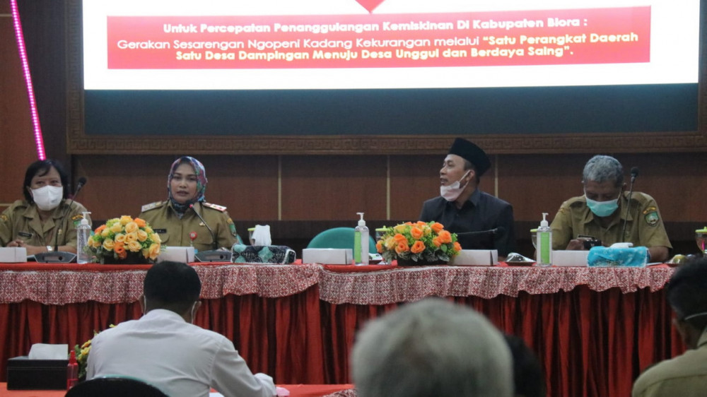 Menurut Bupati, saat ini dampak pandemi membuat angka kemiskinan di Kabupaten Blora sedikit meningkat menjadi 11,9 persen. Sehingga membutuhkan langkah serius untuk mengintervensi kondisi tersebut agar kemiskinan bisa segera terurai dan terentaskan.