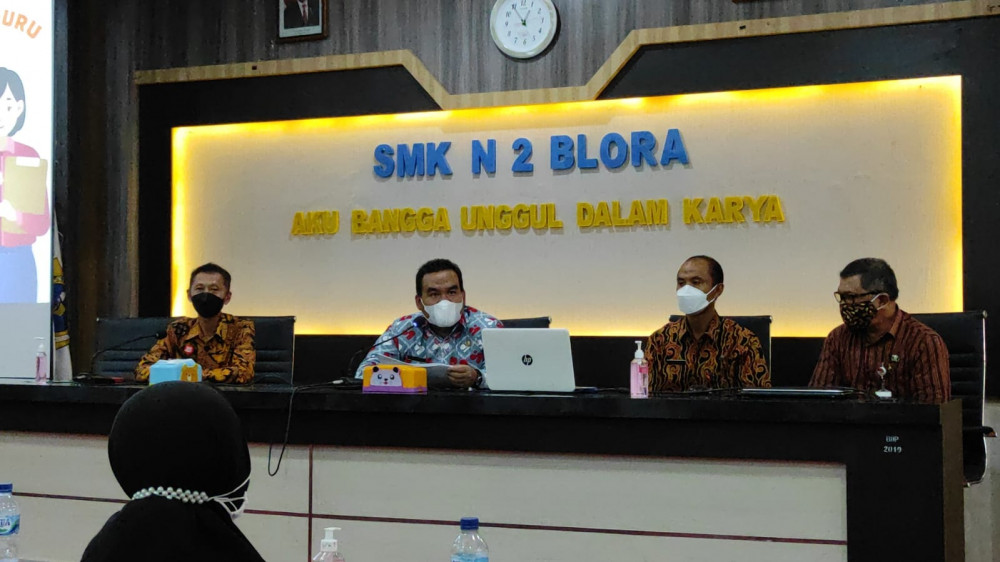Blora - Bupati H Arief Rohman SIP MSi, didampingi kepala dinas Pendidikan Hendi Purnomo SSTP MA, Plt Kepala BKD Drs Heru Eko Wiyono MSi, dan panitia seleksi pegawai pemerintah dengan perjanjian kerja (PPPK) Kabupaten Blora, pada Selasa (14/09/2021) memantau pelaksanaan seleksi PPPK di SMK Negeri 2 Blora.
