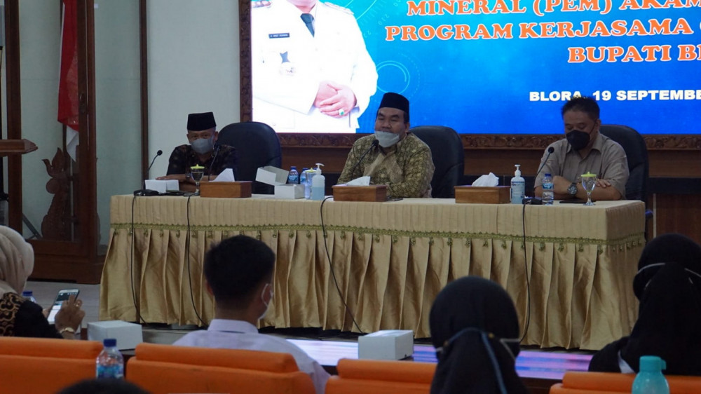 Bupati Arief, dengan didampingi Sekda Komang Gede Irawadi SE MSi, dan Wakil Ketua Baznas Kabupaten Blora Widodo SAg, menyampaikan rasa syukurnya atas keberhasilan menjalin kerjasama dengan PEM Akamigas untuk memberikan beasiswa kepada pelajar Blora yang berprestasi dan kurang mampu.