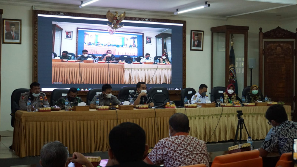 Bupati H Arief Rohman SIP MSi, saat pimpin rapat koordinasi (rakor) kesiapan operasional Bandara Ngloram, di Kecamatan Cepu, Kabupaten Blora. (foto: Dok istimewa)