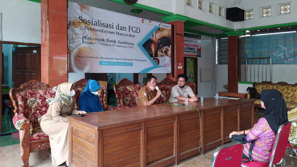 Bojonegoro - Pertamina EP Sukowati Field, pada Senin (01/11/2021), melakukan sosialisasi sekaligus Focus Group Discussion (FGD) terkait program pemberdayaan ekonomi, khususnya bagi para pelaku usaha mikro, kecil, dan menengah (UMKM) di Desa Sambiroto, Kecamatan Kapas, Kabupaten Bojonegoro.