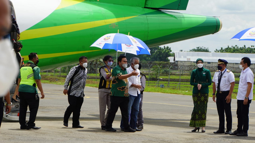 Pesawat jenis ATR 72 dari Maskapai Penerbangan Citilink pada Jumat (26/11/2021) sekitar pukul 11.30 WIB, mendarat dengan selamat di Bandara Ngloram, Blora.