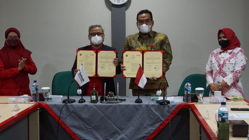 Penandatanganan dilakukan di Gedung Perpustakaan Telkom University, disaksikan Wakil Bupati Tri Yuli Setyowati ST MM., para Wakil Rektor, Dekan, Asisten Daerah, dan OPD terkait.