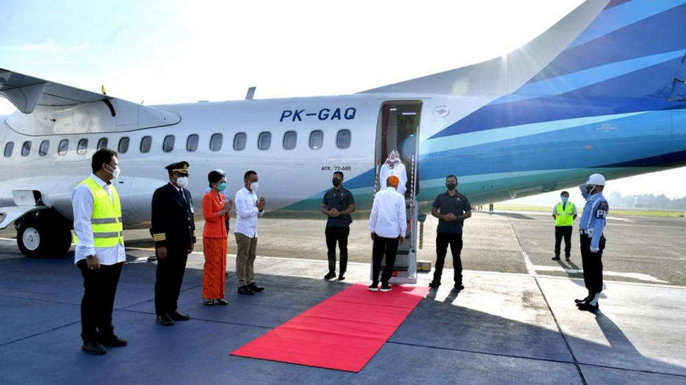 Presiden RI Joko Widodo (Jokowi) dan Ibu Negara Iriana Joko Widodo, beserta rombongan, saat hendak bertolak dari Bandara Halim Perdanakusuma, Jakarta, menuju Bandara Nglora, Blora. Jumat (17/12/2021). (foto: dok istimewa)