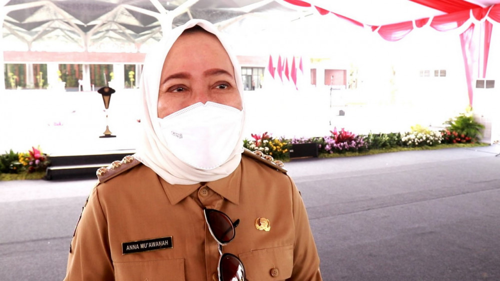 Bupati Bojonegoro Anna Mu'awanah saat beri keterangan di sela peresmian Bandara Nglora, di Kabupaten Blora, Jawa Tengah. Jumat (17/12/2021). (foto: dok istimewa)