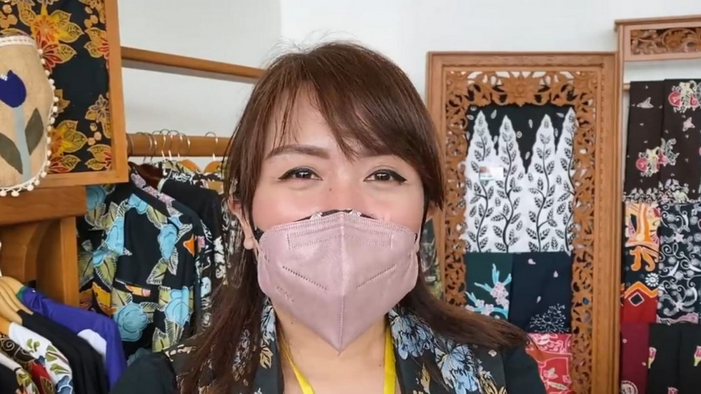 Kristin, salah satu penjaga gerai UKM di Bandara Ngloram Blora, mengaku terkejut saat Presiden Jokowi dan Ibu Negara mampir ke tokonya untuk membeli produk karya UKM Blora. Jumat (17/12/2021). (foto: dok istimewa)