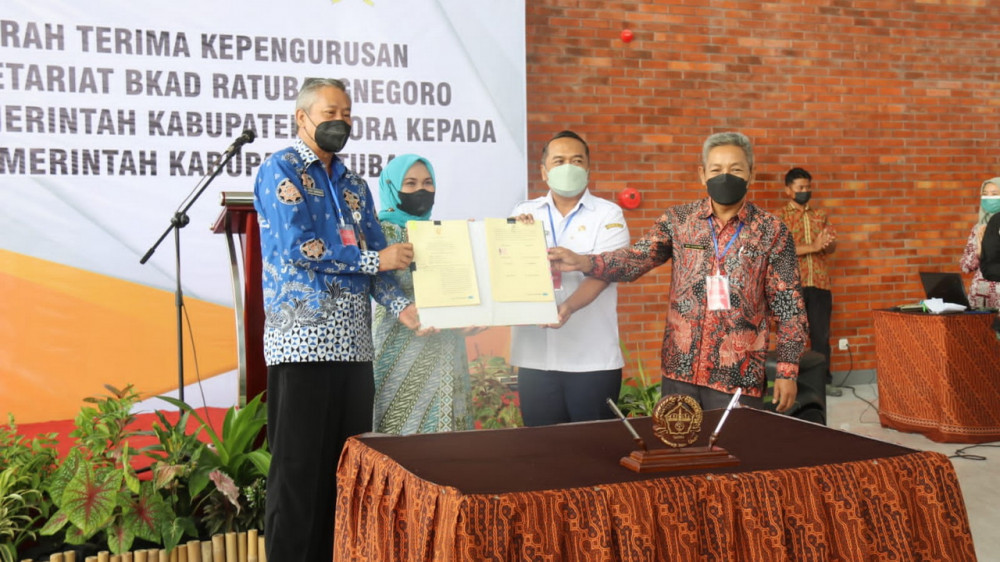 Serah terima sekretariat BKAD Ratubangnegoro dari Blora ke Tuban di Bandara Ngloram, Blora. Jumat (31/12/2021). (foto: dok istimewa)