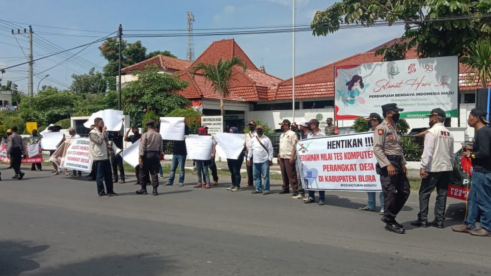 Puluhan Massa di Blora Gelar Unjuk Rasa, Tuntut Tes Perangkat Desa Dibatalkan