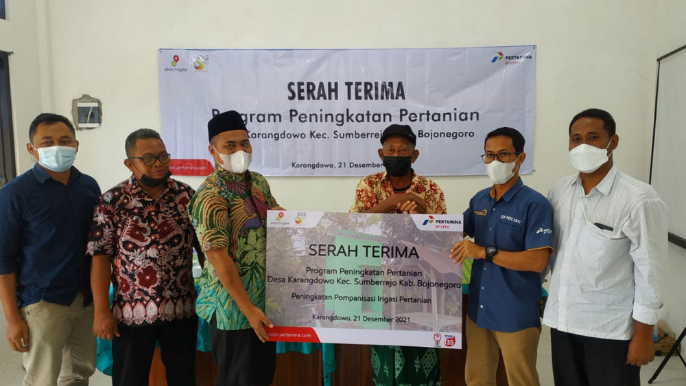 Serah terima Program Pengembangan Masyarakat (PPM) PEPC JTB, berupa pipanisasi pertanian di Desa Karangdowo, Kecamatan Sumberrejo, Kabupaten Bojonegoro. (foto: dok istimewa)