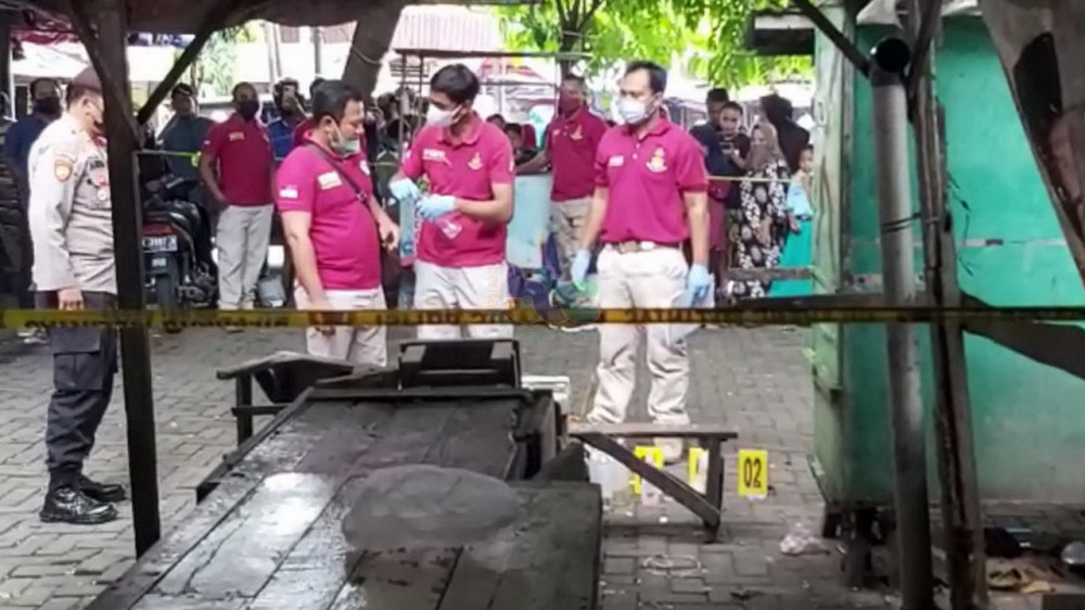 Petugas kepolisian saat lakukan olah TKP, di Plaza Cepu, Blora. Rabu (19/01/2022) (foto: dok istimewa)