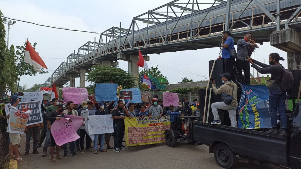 Dalam aksinya, para pendemo membawa 4 tuntutan terkait dengan rekrutmen tenaga kerja di PT Solusi Bangun Indonesia (SBI) Pabrik Tuban.