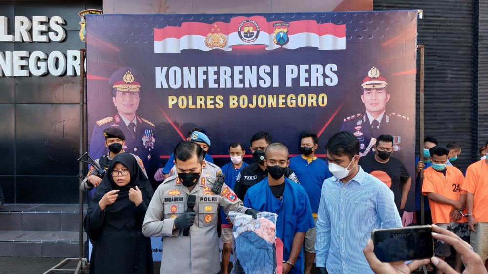 Kapolres Bojonegoro Ajun Komisaris Besar Polisi (AKBP) Muhammad, dalam konferensi pers di hadapan sejumlah awak media di Mapolres Bojonegoro, Kamis (24/02/2022) menjelaskan bahwa pelaku pertama kali melakukan persetubuhan terhadap korban pada bulan Maret 2021.