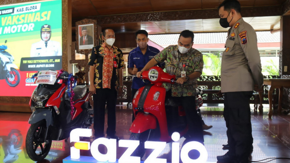 Blora - Gerakan vaksinasi berhadiah motor kembali diluncurkan Pemerintah Kabupaten (Pemkab) Blora di Pendopo Rumah Dinas Bupati. Kamis (24/03/2022).