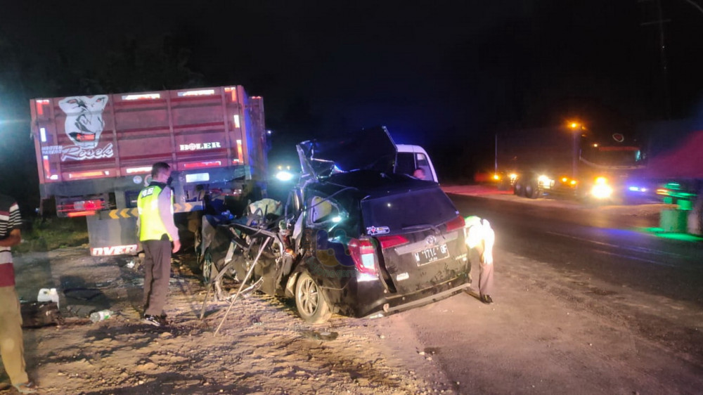Kendaraan rombongan peziarah yang berpenumpang 9 orang diduga berjalan dengan kecepatan cukup tinggi, namun tiba-tiba oleng ke kiri dan menabrak bagian belakang truk trailer yang sedang parkir di pinggir jalan.