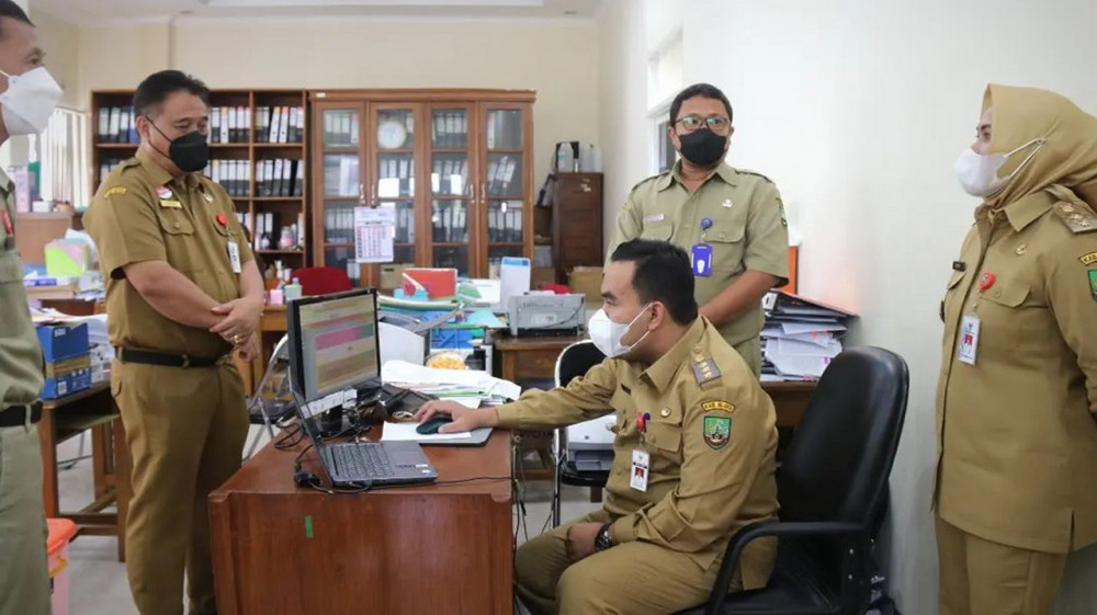 Bupati bersama rombongan saal laksanakan sidak di Kantor Badan Kepegawaian Daerah (BKD). Senin (09/05/2022) (foto: dok istimewa)