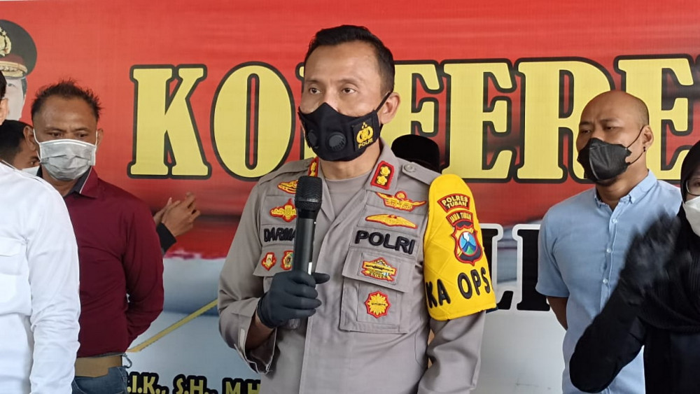 Kapolres Tuban AKBP Darman saat menggelar konferensi pers di Mapolres Tuban. Rabu (11/05/2022). (foto: dok istimewa)