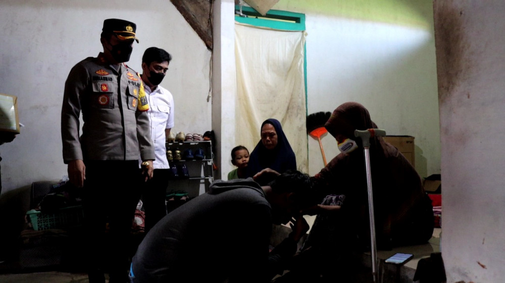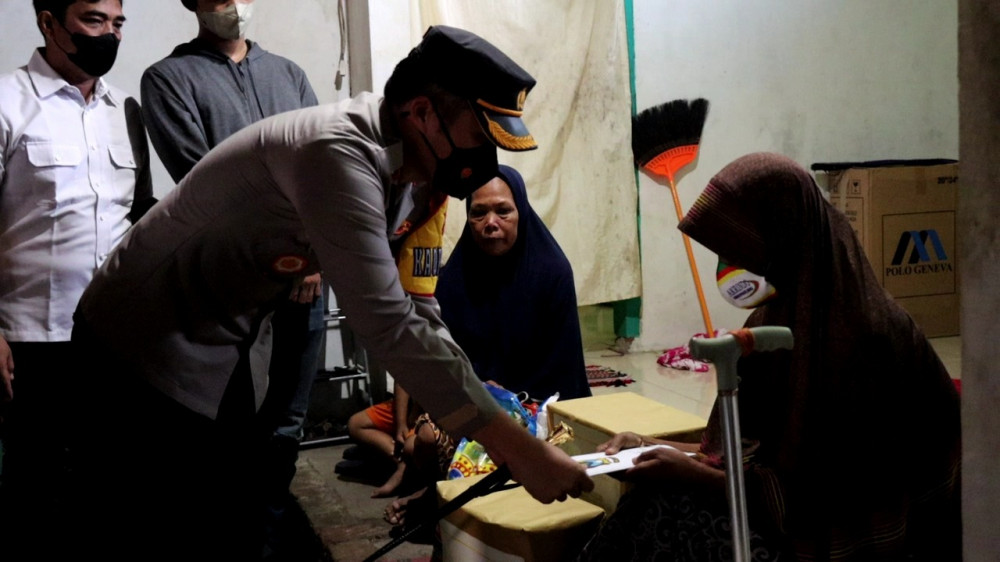 Kapolres Bojonegoro AKBP Muhammad, saat memberikan bantuan kepada ibu tersangka pencurian helm. (foto: dok istimewa)