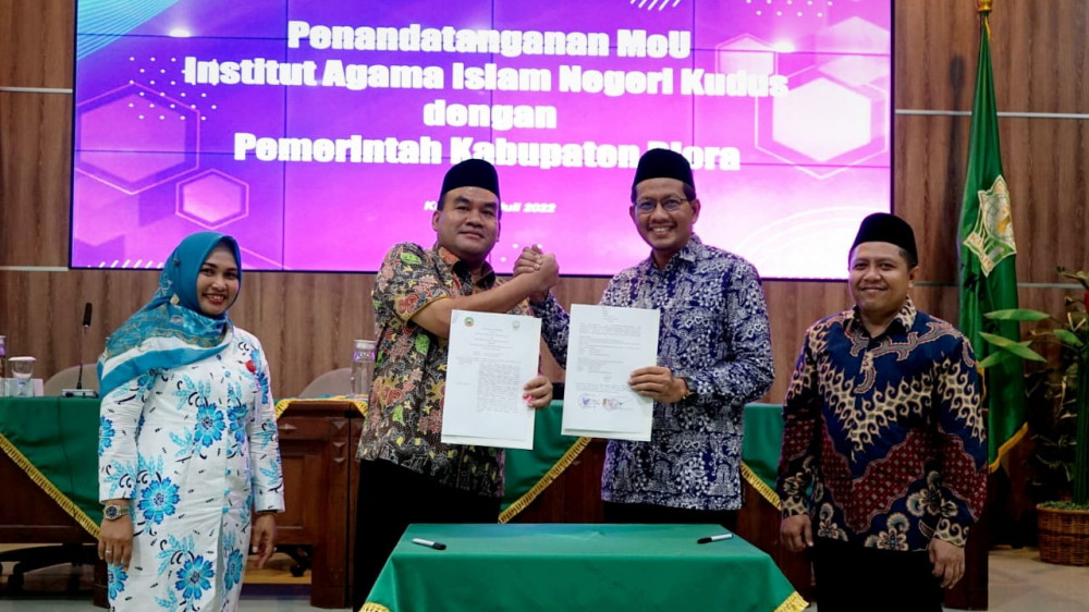 Komitmen tersebut dituankan dalam memorandum of understanding (Mou) yang ditandatangani Bupati Blora H Arief Rohman bersama Rektor IAIN Kudus Prof Dr H Abdurrohman Kasdi LC MAg, Kamis sore (14/07/2022).