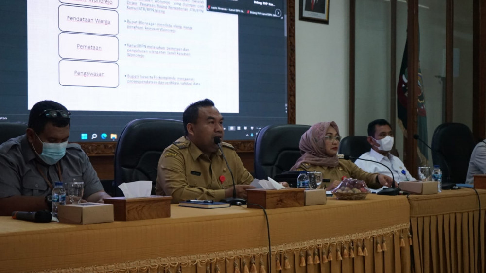 Rapat yang digelar di ruang pertemuan Setda Blora tersebut dipimpin Bupati Arief Rohman, bersama Wakil Bupati Tri Yuli Setyowati, diikuti jajaran Forkopimda Blora, dan diikuti oleh Kepala Kanwil ATR BPN Jateng, Dwi Purnama, yang terhubung secara daring melalui sambungan zoom meeting.