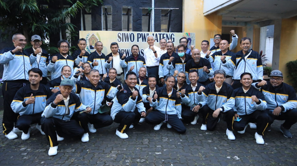 “Nanti kalau olahraga ya hati-hati, pakai pemanasan dan stretching biar kemudian datang sehat, di sana bawa juara, dan pulang kembali bersemangat,” kata Ganjar Pranowo.