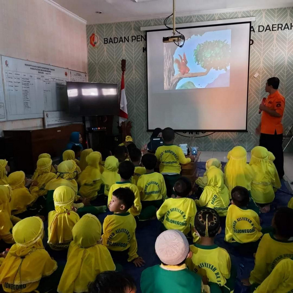 Ilustrasi: Salah satu kegiatan mitigasi bencana kepada anak-anak TK yang di lakukan BPBD Bojonegoro. (Foto: Dok Istimewa)