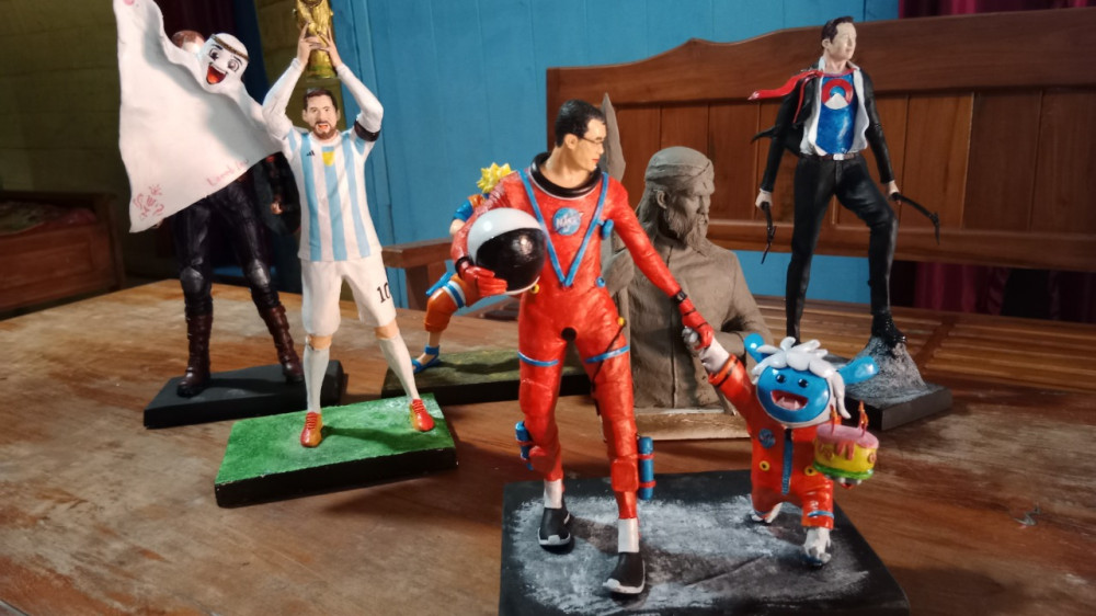 Berbagai miniatur tokoh film kartun luar negeri dan sejumlah tokoh yang ia buat mampu membuat orang kagum melihatnya.