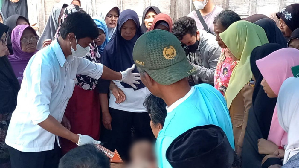 Petugas saat identifikasi mayat Adib Nur Iskandar Dinata (19) warga Kecamatan Blora, Kabupaten Blora, yang meninggal akibat terkena peluru senapan angin miliknya sendiri. Senin (02/01/2022) (Foto: Dok Istimewa)