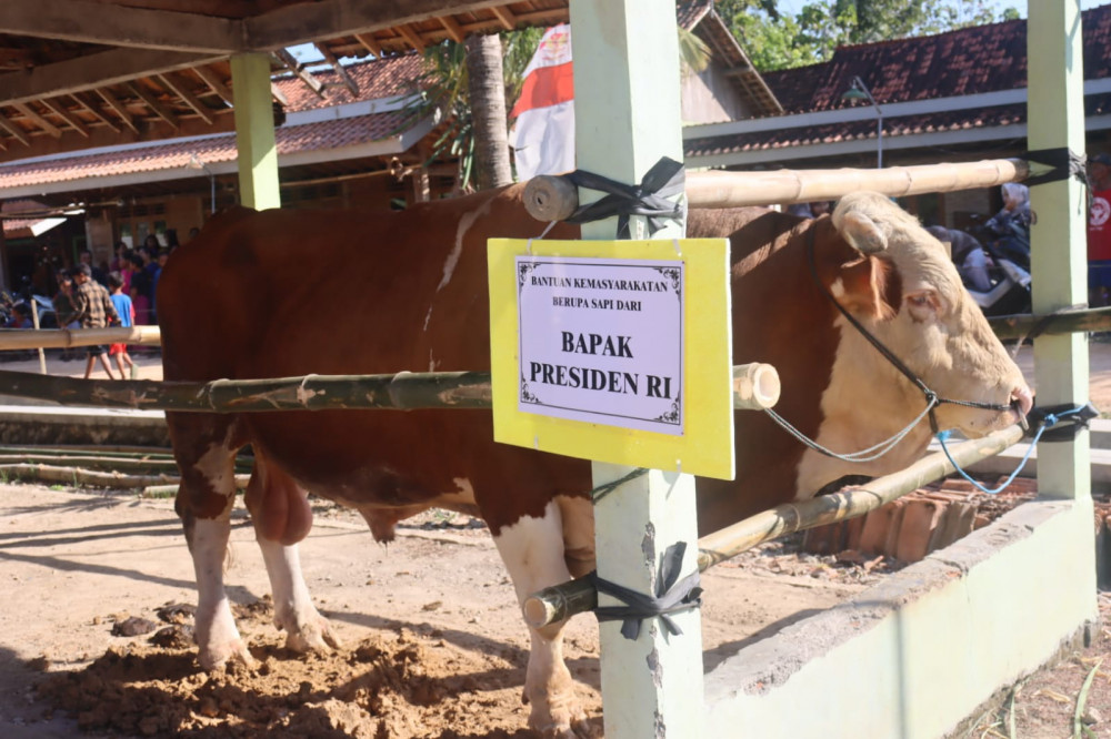 Sapi kurban dari Presiden Joko Widodo yang ditempatkan di desa tempat tinggal atlet sepakbola Timnas Indonesia Pratama Arhan, yaitu Desa Sidomulyo, Kecamatan Banjarejo, Blora