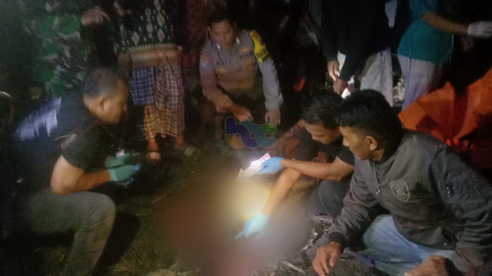 Petugas saat lakukan olah TKP di lokasi meninggalnya warga di sawah tebu di di Desa Bulu, Kecamatan Sugihwaras, Kabupaten Bojonegoro. Selasa malam (15/08/2023) (Aset: Istimewa)