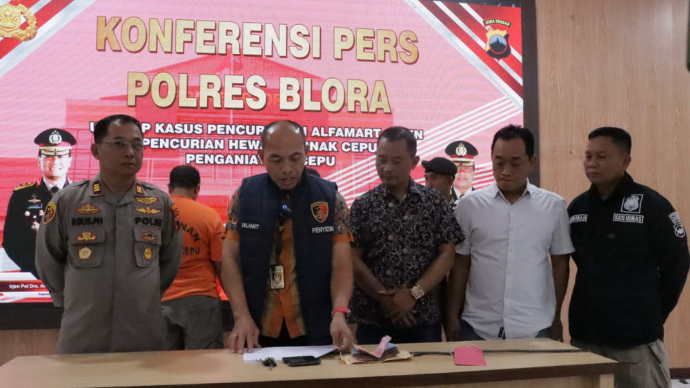 Kepolisian Resor (Polres) Blora, saat menggelar konferensi pers di Mapolres Blora. Sabtu (19/08/2023). (Aset: Istimewa)
