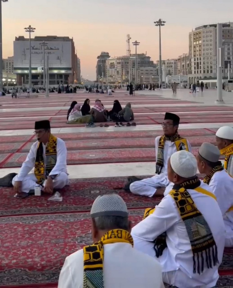 Suasana pengajian jemaah umrah dari KBIHU Masyarakat Madani Bojonegoro, di Masjid Nabawi al Munawaroh, Madinah. Rabu (24/01/2024) (Aset: Istimewa)