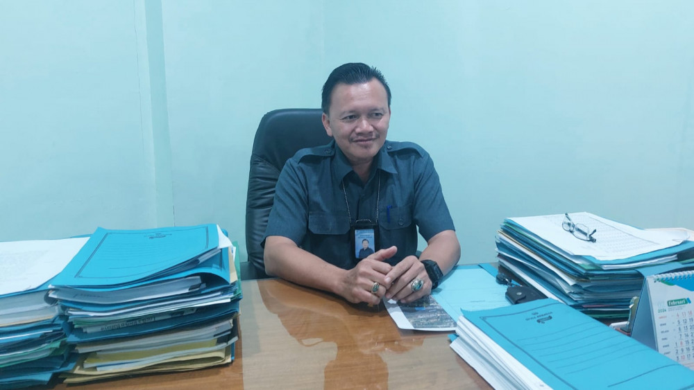 Direktur Perusahaan Umum Daerah (Perumda) Tirta Buana, Kabupaten Bojonegoro, Khairul Anwar saat beri keterangan. Senin (29/01/2023) (Aset: Imam Nurcahyo/BeritaBojonegoro.com)