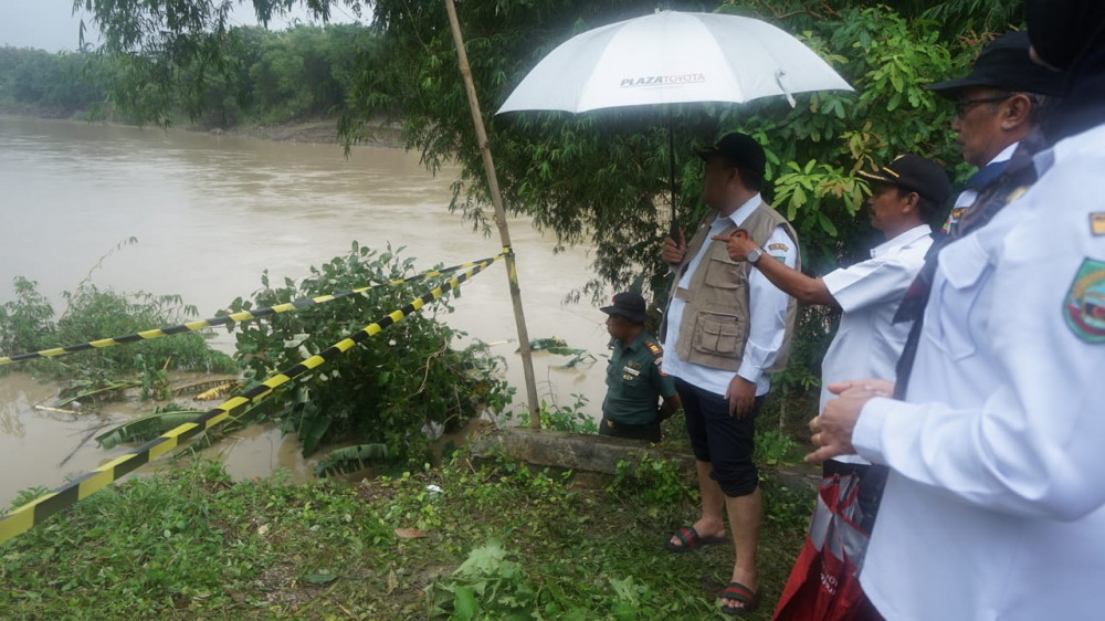 Bupati Blora Arief Rohman, saat meninjau lokasi tebing sungai Bengawan Solo yang longsor di Kecamatan Cepu, Kabupaten Blora, Jawa Tengah. (Aset: Istimewa)