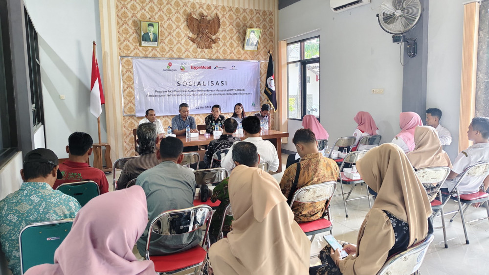 ExxonMobil Cepu Limited (EMCL) saat sosialisasikan  Program Pengembangam Mayarakat di Balai Desa Ngampel, Kecamatan Kapas, Kabupaten Bojonegoro. Rabu (22/05/2024).
