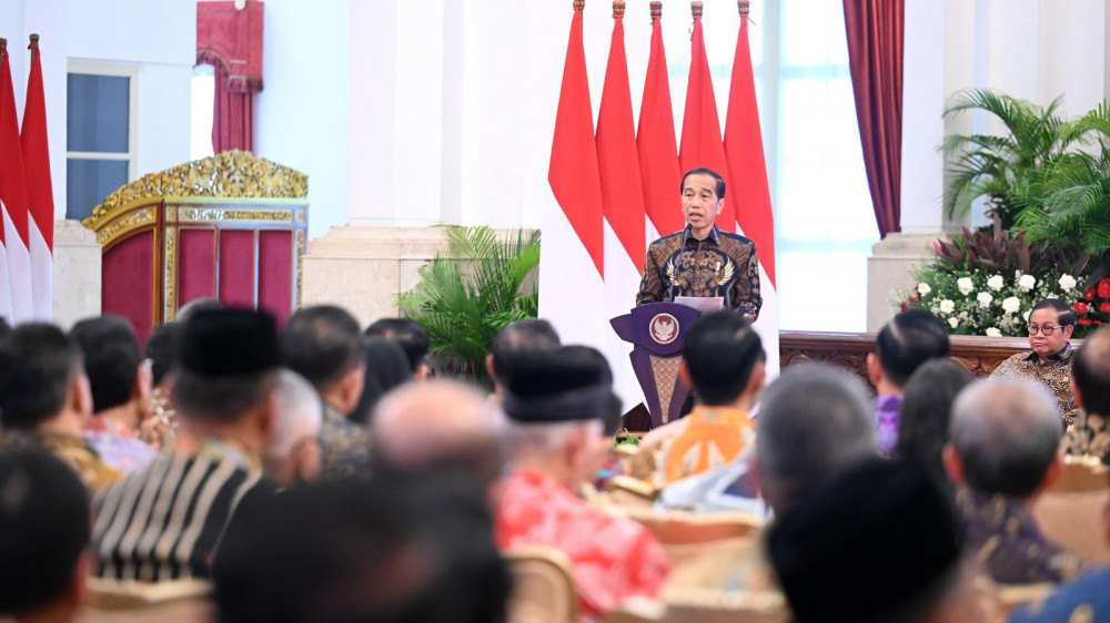 Presiden Joko Widodo, saat beri sambutan dalam acara SPBE Summit 2024 dan Peluncuran GovTech Indonesia di Istana Negara. Senin (27/5/2024) (Aset: Istimewa)