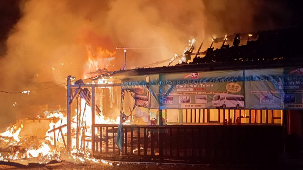 Kebakaran rumah di Pasar Desa Ngambon, Kecamatan Ngambon, Kabupaten Bojonegoro, Jawa Timur. Sabtu (15/06/2024). (Aset: Istimewa)