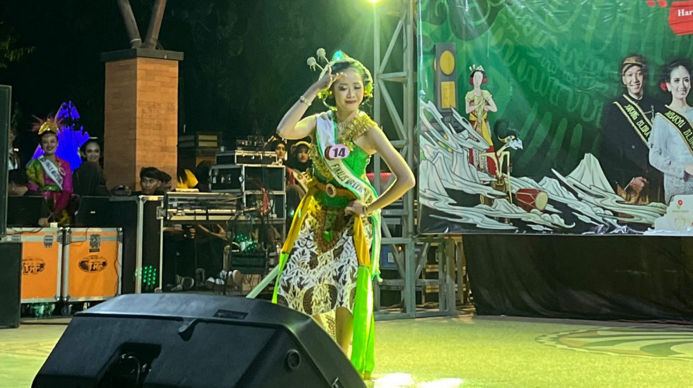 Salah satu finalis Kakang Mbakyu Duta Wisata Kabupaten Blora tahun 2024, saat tampil di Lapangan Tuk Buntung Cepu, Blora. Senin (08/07/2024) (Aset: Istimewa)