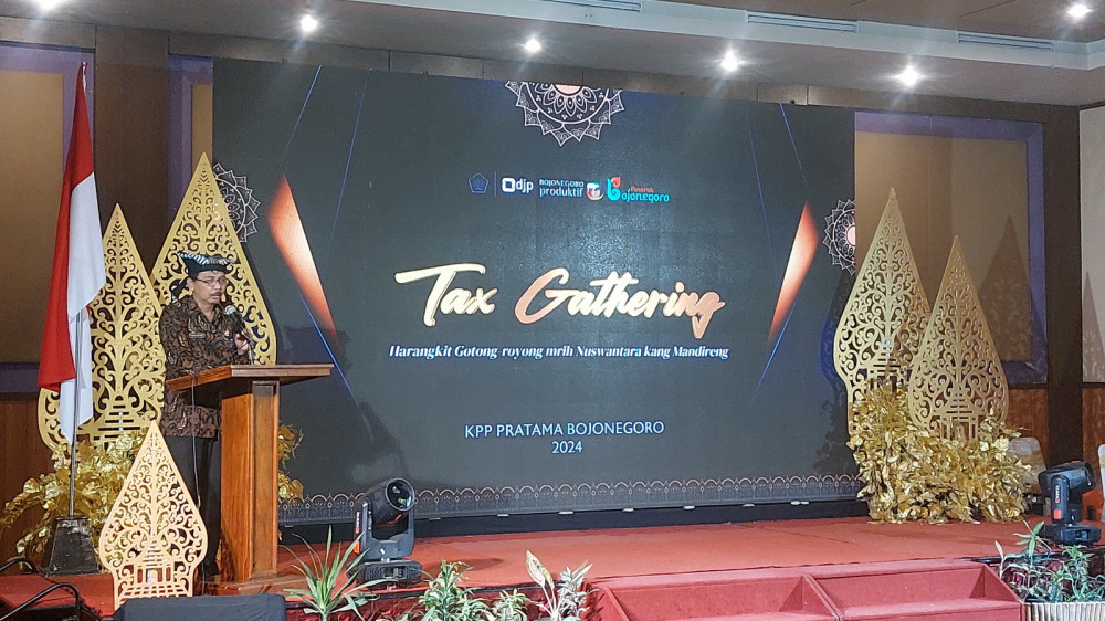 Kepala KPP Pratama Bojonegoro Djunaidi Djoko Prasetyo dalam sambutannya menyampaikan bahwa acara Tax Gathering ini merupakan perwujudan rasa terima kasih KPP Pratama Bojonegoro atas setoran pajak yang telah dibayarkan kepada negara melalui KPP Pratama Bojonegoro.