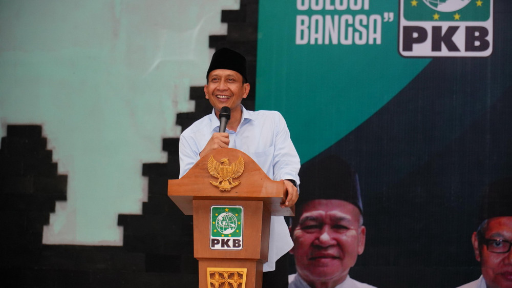 Cabup Setyo Wahono saat memberikan sambutan dalam acara Konsolidasi yang digelar DPC Partai Kebangkitan Bangsa (PKB) Kabupaten Bojonegoro, Jawa Timur. Sabtu (21/09/2024). (Aset: Istimewa)
