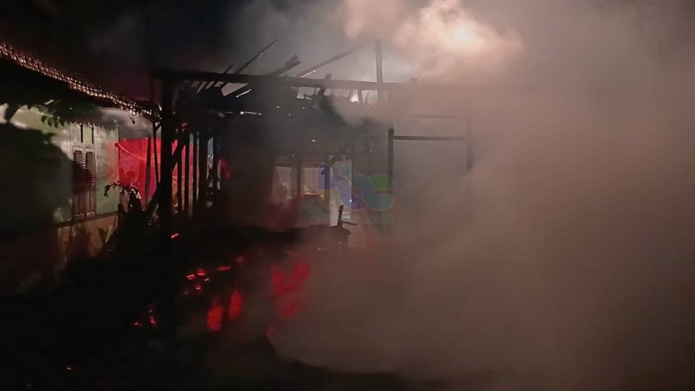 Atas kejadian tersebut rumah tengah korban terbakar habis, sementara untuk bagian depan tinggal kerangka rumah.