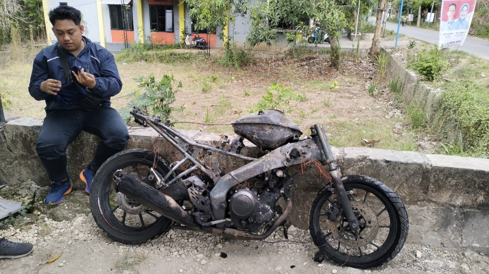 Satu unit sepeda motor yang terbakar di Desa Sumberejo, Kecamatan Trucuk, Kabupaten Bojonegoro, Jawa Timur. Senin (04/11/2024) (Aset: Istimewa)