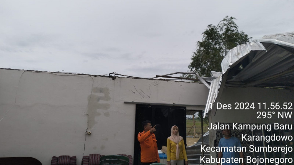Kondisi rumah warga Dusun Kilet, Desa Karangdowo, Kecamatan Sumberrejo, Kabupaten Bojonegoro, Jawa timur, yang rusak ringan akibat diterjang angin kencang. Minggu sore (01/12/2024). (Aset: Istimewa)