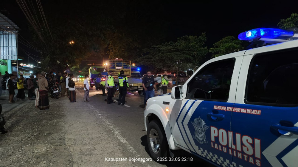 Bojonegoro - Kecelakaan lalu-lintas antara truk dengan truk tronton terjadi pada Rabu malam (05/03/2025) pukul 20.40 WIB, di Jalan Raya Bojonegoro-Babat, turut wilayah Desa Mejuwet, Kecamatan Sumberrejo, Kabupaten Bojonegoro, Jawa Timur.
