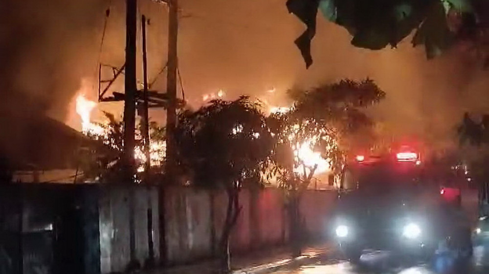 Kebakaran gudang kayu di Jalan Hayam Wuruk Timur, turut Kelurahan Karangpacar, Kecamatan Bojonegoro Kota, Kabupaten Bojonegoro, Jawa Timur. Minggu dini hari (09/03/2025). (Aset: Istimewa)