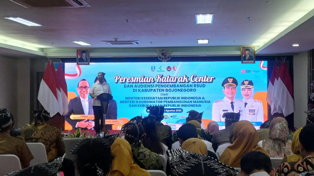 Bojonegoro - Menteri Koordinator Bidang Pembangunan Manusia dan Kebudayaan (Menko PMK) Pratikno, hadiri peresmian “Katarak Center” di Rumah Sakit Umum Daerah (RSUD) Padangan, Kabupaten Bojonegoro, Jawa Timur. Selasa (05/08/2025).