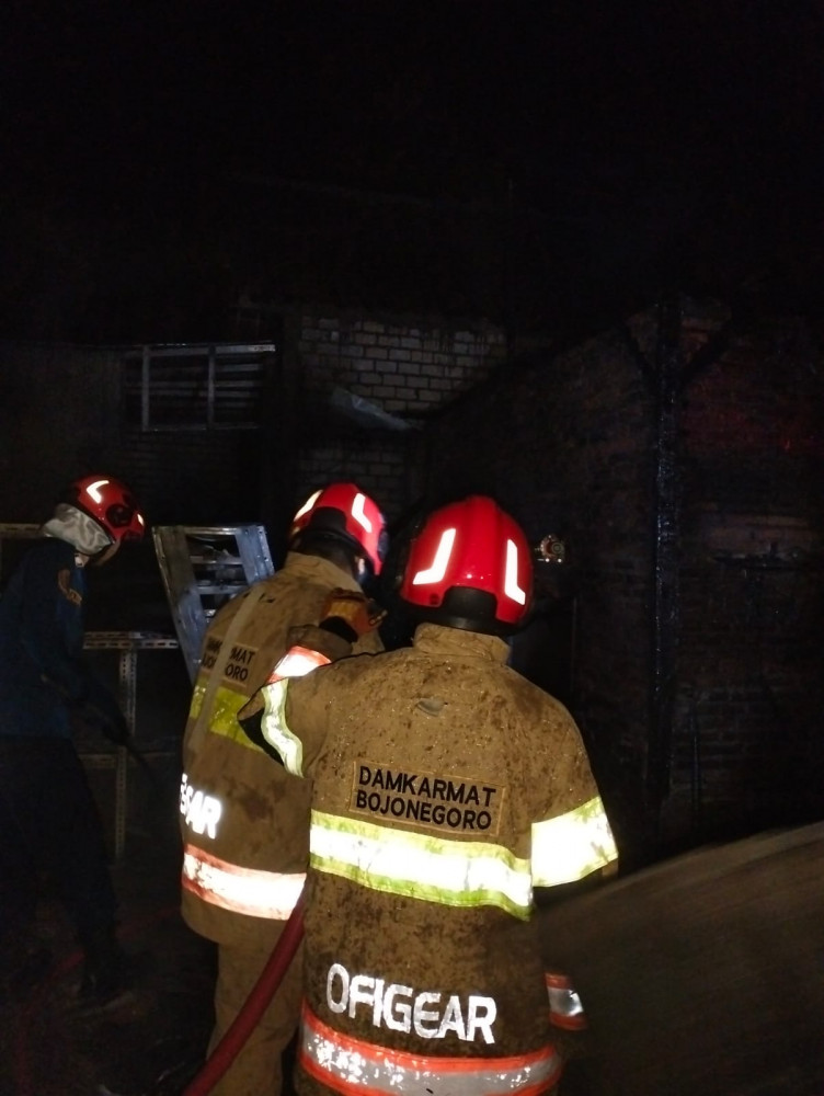 Petugas saat lakukan pemadaman kebakaran rumah Sumari (50), di Dusun Klampisan, Desa Mlinjeng, Kecamatan Sumberrejo, Kabupaten Bojonegoro, Jawa Timur. Jumat pagi (05/09/2025) (Aset: Istimewa).