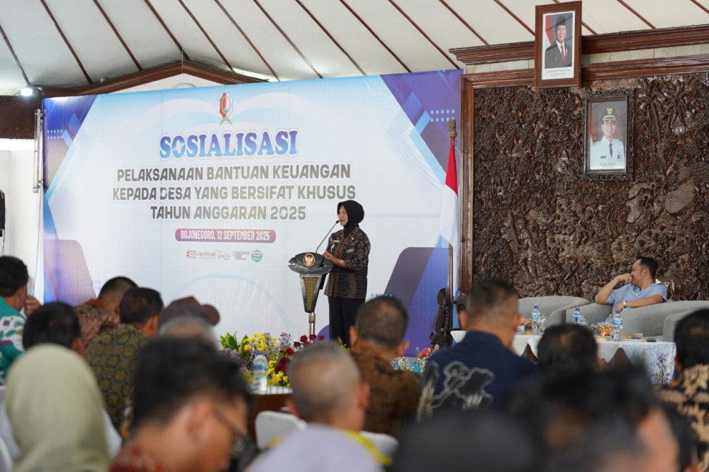 Bojonegoro – Pemerintah Kabupaten Bojonegoro mendorong kepada penerima Bantuan Keuangan kepada Desa (BKKD) yang bersifat khusus Tahun Anggaran 2025 agar bekerja secara transparan dan terukur. Hal itu menjadi perhatian khusus Pemkab Bojonegoro dalam sosialisasi yang digelar di Pendopo Malowopati, Jumat (12/9/2025). Kegiatan ini dihadiri Bupati Bojonegoro Setyo Wahono, Wakil Bupati Nurul Azizah, 28 camat, serta 336 kepala desa di kota Ledre ini.