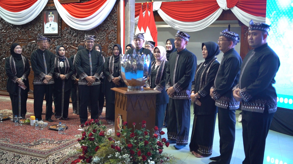 Bojonegoro - Bupati Bojonegoro Setyo Wahono, didampingi Wakil Bupati Nurul Azizah dan Ketua DPRD Abdulloh Umar, bersama jajaran Forkopimda Bojonegoro laksanakan Penyemayaman Api Abadi, di tempat “persemayaman” yang telah disiapkan, di Pendopo Malowopati Pemkab Bojonegoro. Minggu malam (19/10/2025).