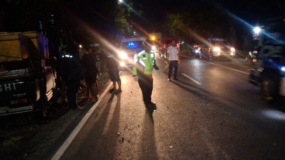 Pada saat yang sama, lanjut Ipda Septian, dari arah berlawanan berjalan kendaraan Mithsubishi L300 pikap nomor polisi W 8897 EA yang dikemudikan oleh Moh Zaki Ardiansyah.